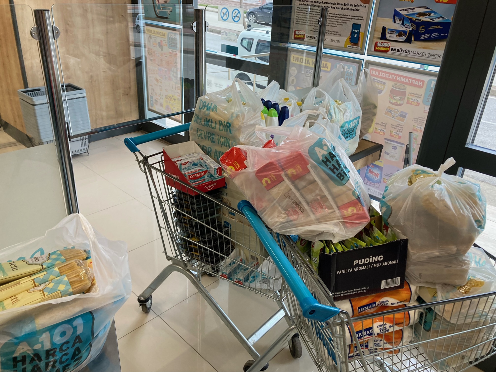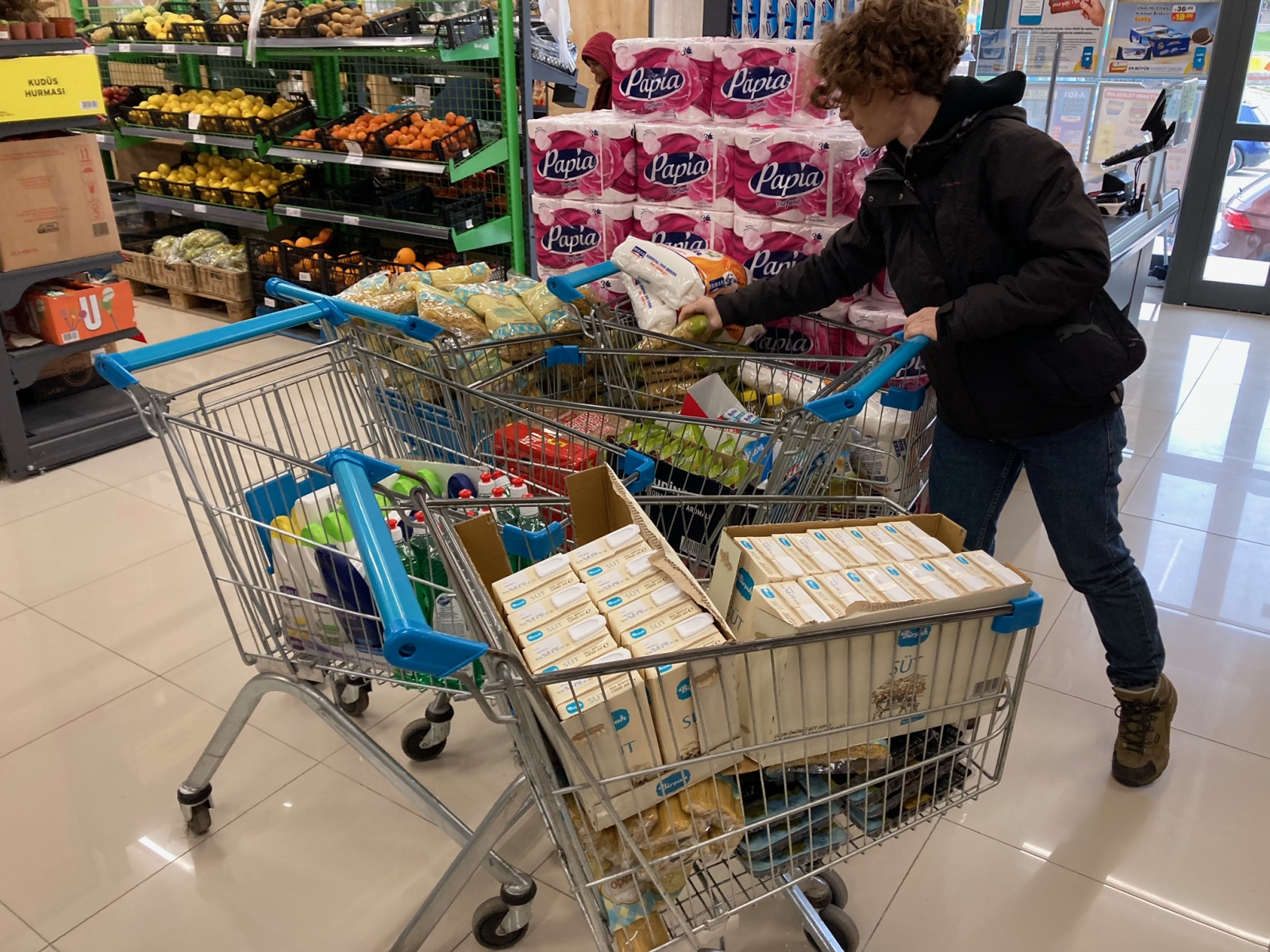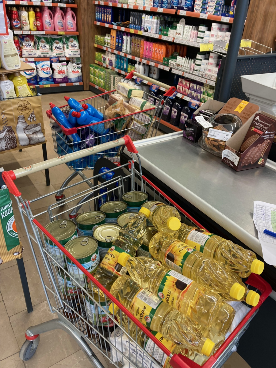 “Askıda Mutfak Sepeti” projesini mart başında planladığımızda araştırma yaptığımız 4 farklı marketten 25’i aşkın ürün alıp bunları kolilemeyi düşündük. Mart ayı için bu şekilde bir uygulama yaptık ve 20 aile için alışveriş ve kolileme yaptık. Fakat bunun operasyonel olarak yorucu olduğunu ve ayrıca ürünlere devamlı zam geldiğini gördük. Ayrıca ailelerin ihtiyaçlarına göre alışveriş yapma özgürlüğünde olmasını da istedik.